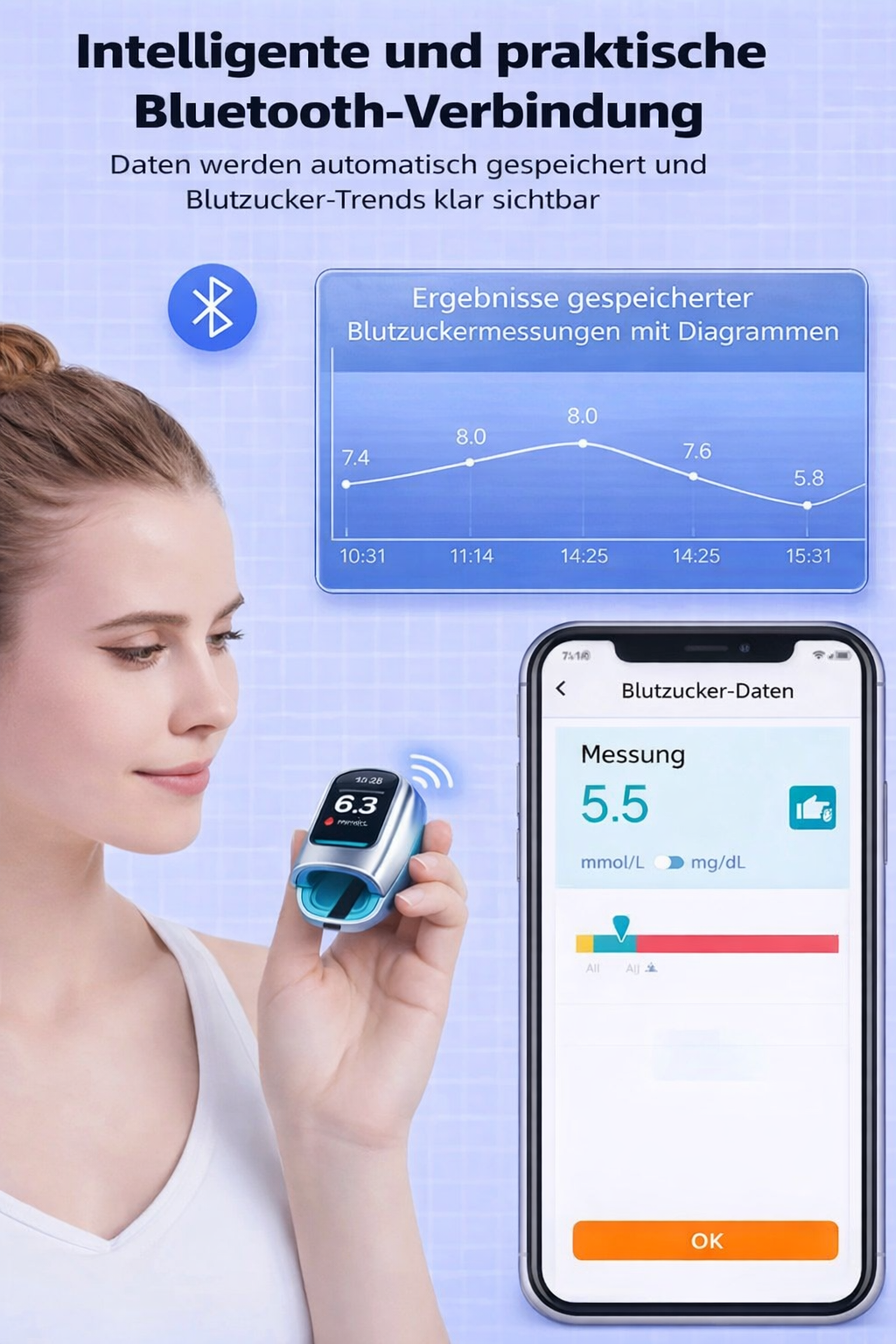 Keine Nadeln oder Blutentnahme erforderlich: Besonders geeignet für ältere Menschen, Schwangere, Kinder und Personen mit empfindlicher Haut.